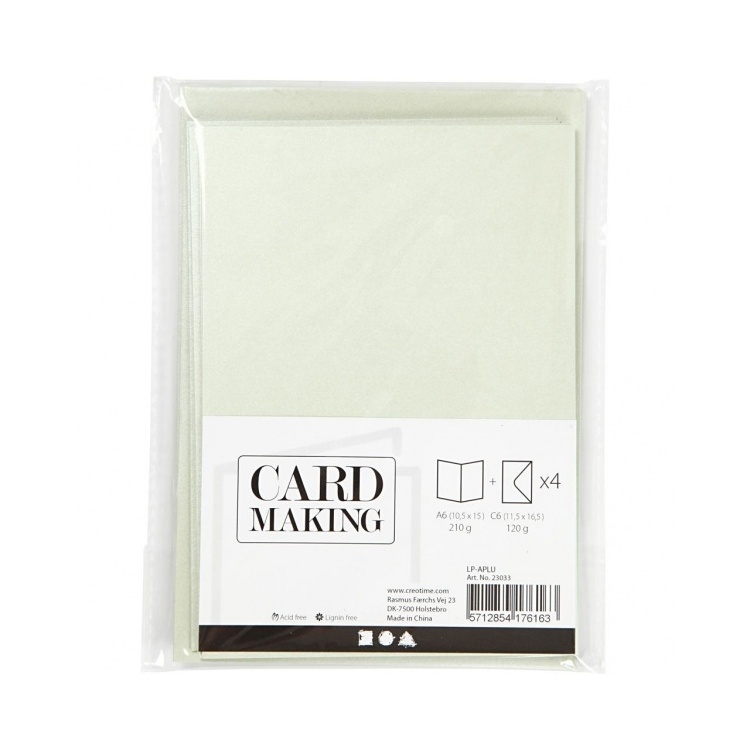 Kaartide valmistamise komplekt - pakis 4tk kokkumurtud kaarti (240gr) ja 4 ümbrikut (120gr).