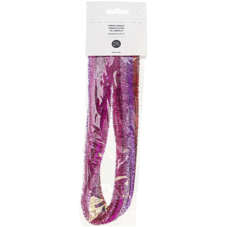 Chenille stick 50cm, thickness 9mm, glitter red, 10pcs