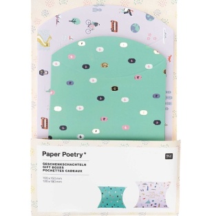 Komplektis 6 volditavat kinkekarp - 3tk suuruses 12x18cm ja 3tk 10x15cm.