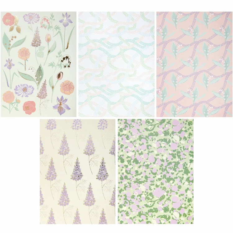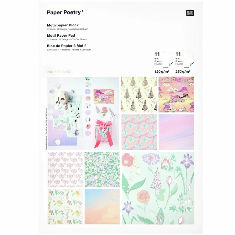 12 lehte 120gr ja 11 lehte 270gr. Osad lehed kuldse fooilumiga mustrites.