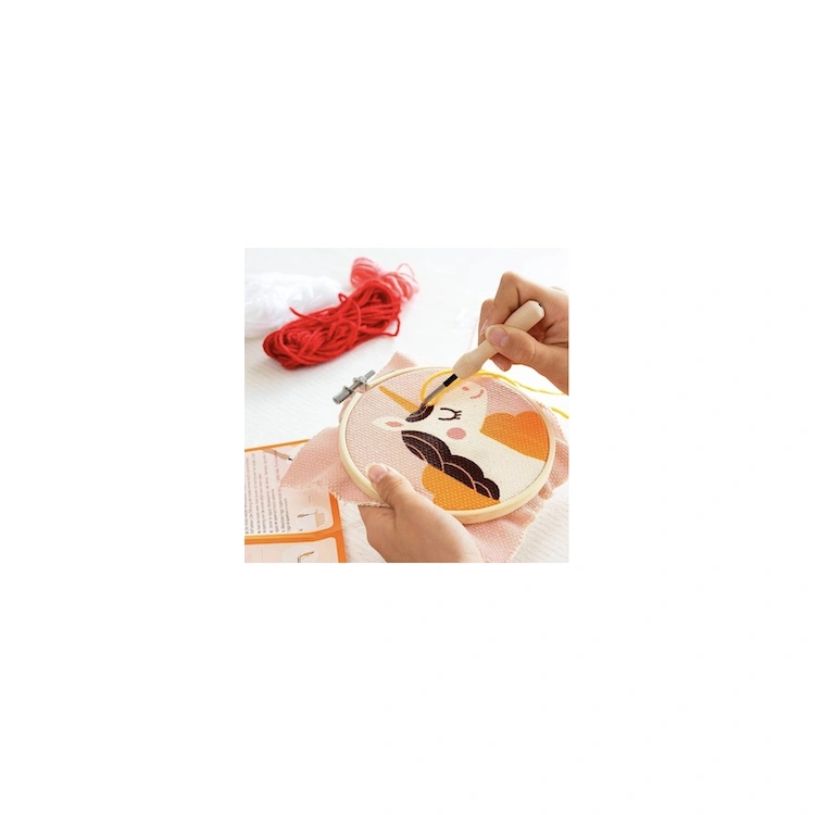 Komplektis Torkenõel, kangas trükiga, tikkimisrõngas d-13cm, plastikust nõel, 4 lõnga