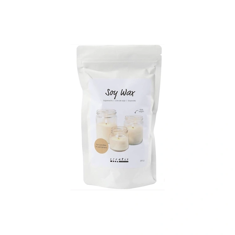 Soy wax in flakes, 100% vegan. Perfect for those of you who want to cast their own candles in jars. Produce 80–90% less soot than traditional candles. Melting temperature: 50–55 °C. Add dye and/or fragrance, for example. Drying time: 4 hours. Curing time: 48 hours before use .