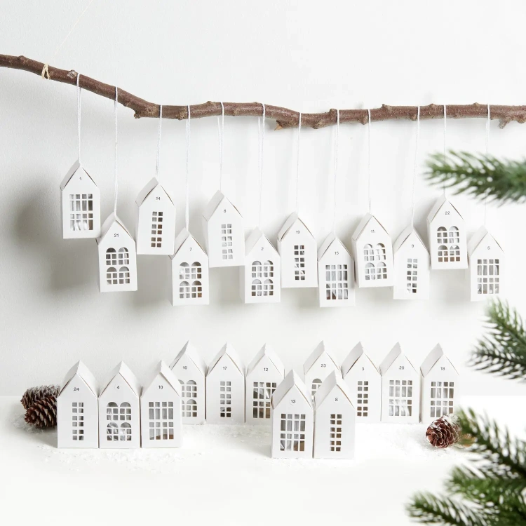 Advendikalendri valm. komplekt Majad/ valge, riputatav 24tk,