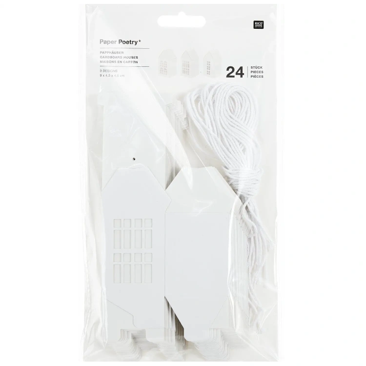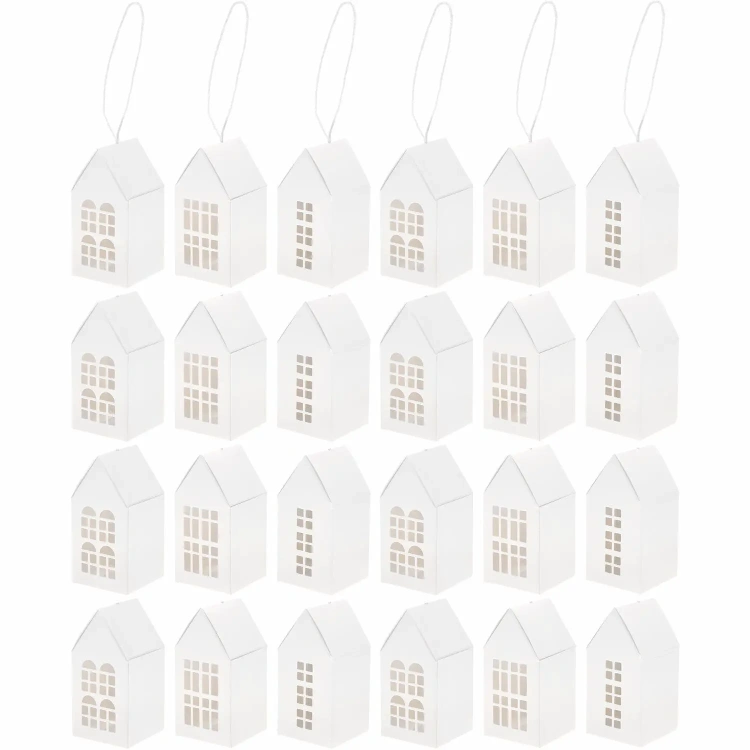 komplektis 24 kokkuvolditavat aknaga majakest. 1 majakese mõõt 5x5x7cm. Saad majakesed kas riputada või niisama riiulile asetada.