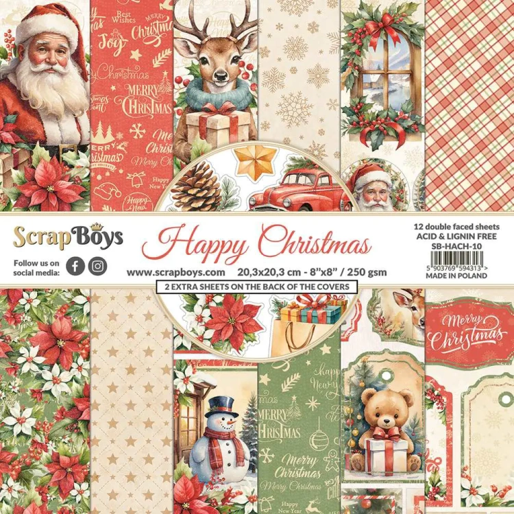 Disainpaberi komplekt 20x20cm, 12 l, Happy Christmas,