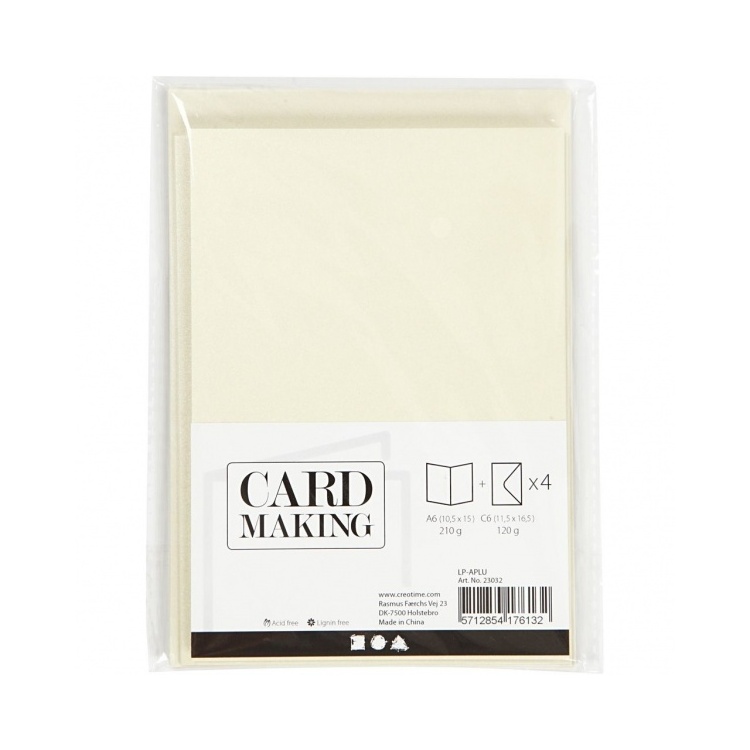 Kaardid ja ümbrikud 10,5x15cm/ 4tk pärlmutter kreem