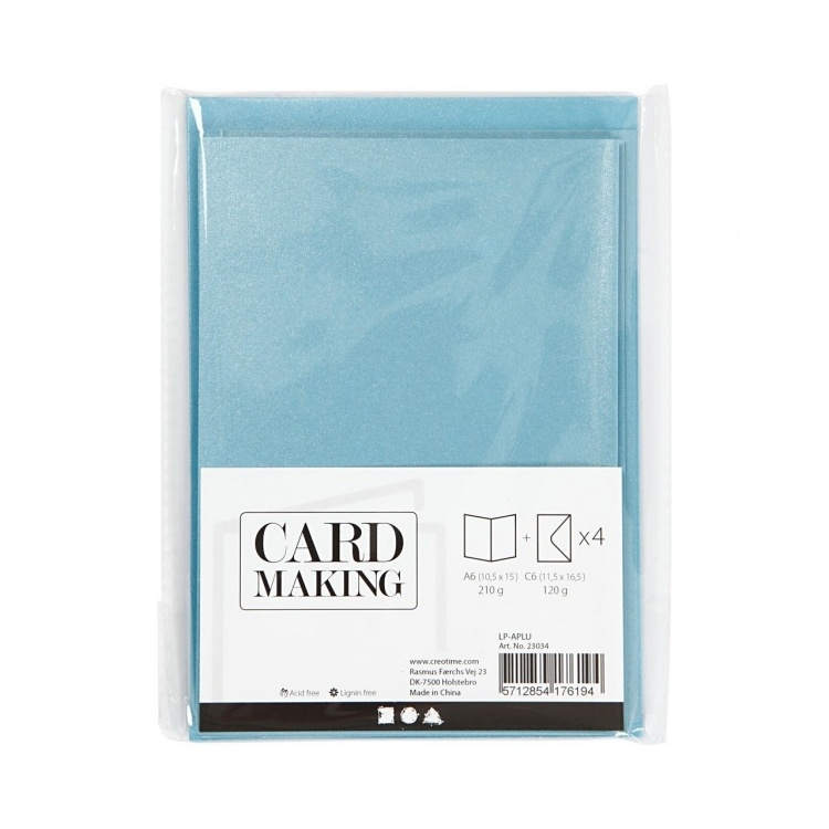 Kaardid ja ümbrikud 10,5x15cm/ 4tk pärlmutter sinine