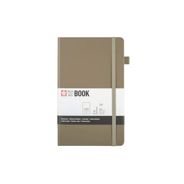 Kõvade kaantega, 140gr paber, sisu punktid, paelast järjehoidja ja kinnituskumm.
