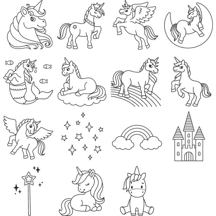 Templid komplekt Ükssarvikud 15tk+templipadi