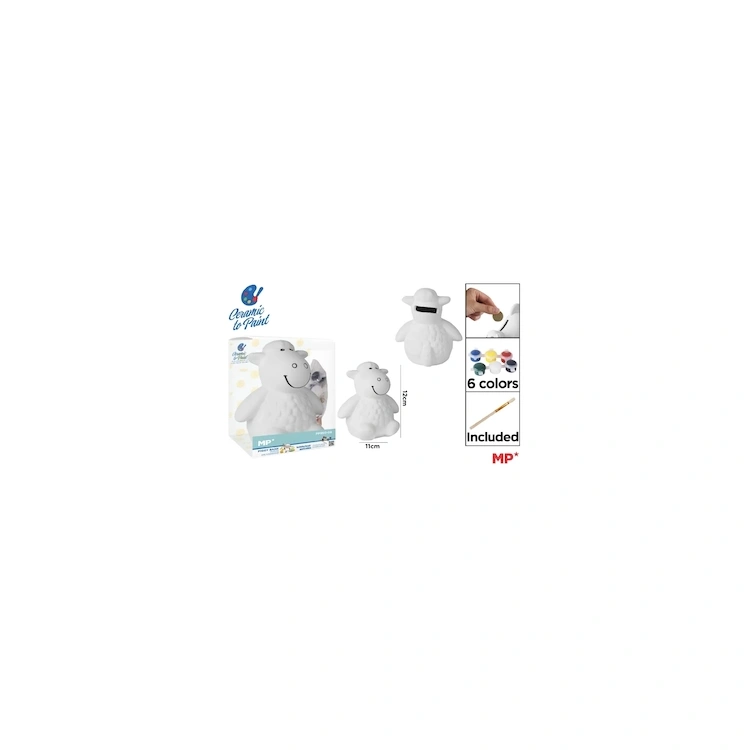 Valgest terrakotast rahakassa, komplektis kaasas pintsel ja 6 värvi rahakassa värvimiseks.